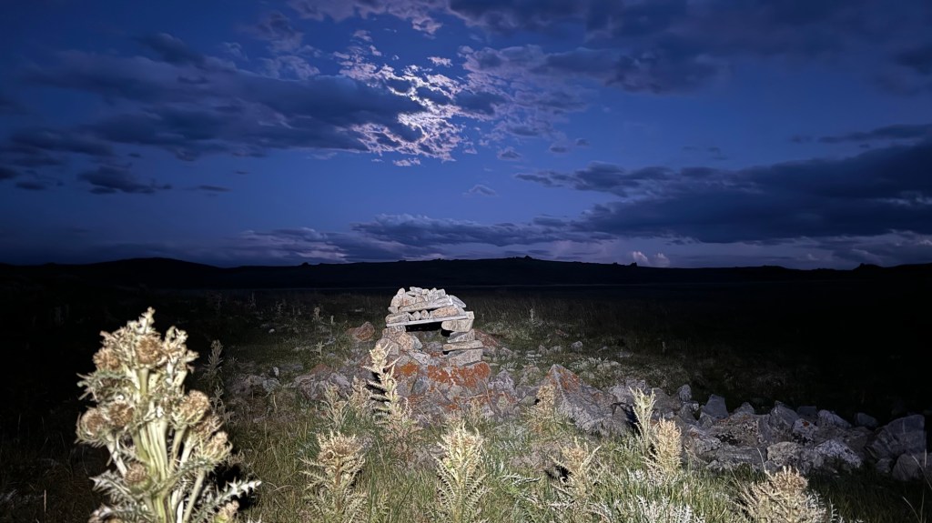 Our goal was to make it to the next water source which we did around 9 PM. We had to turn our head lamps on and walk through a very bumpy field to find a rock arch and then water below it. The water was ice cold from a spring and we filled up for camp and tomorrow morning.