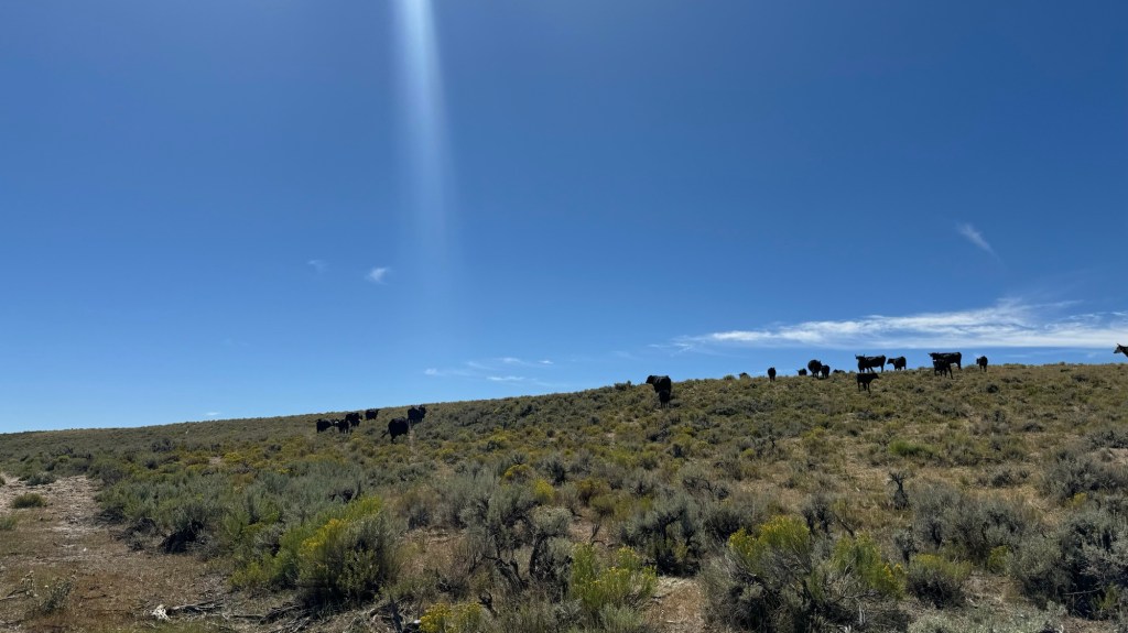 When we were nearing our next water source we saw a ton of cows and some rather big bulls so we walked slowly and waved them off up a hill.