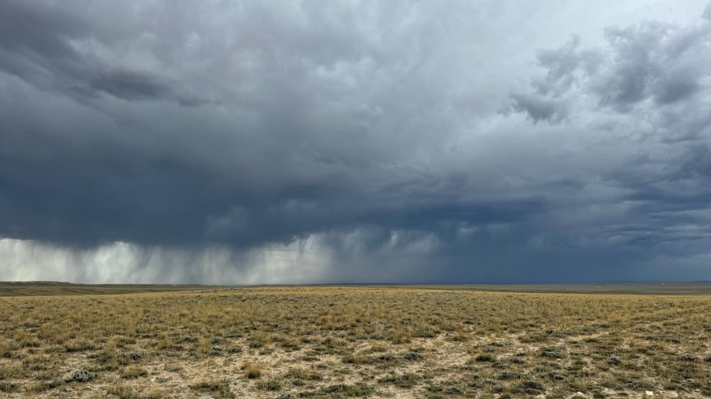 We watched the storm get closer and started to get rained on but we kept moving. At one point we considered stopping to hide out as the lightning seemed close but then it started to stop as we continued east.