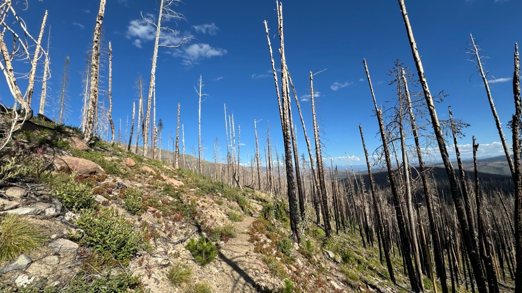 We continued on through the ups and down and before the final climb went through a burn zone. It’s crazy to think about all the burn zones we have been through.