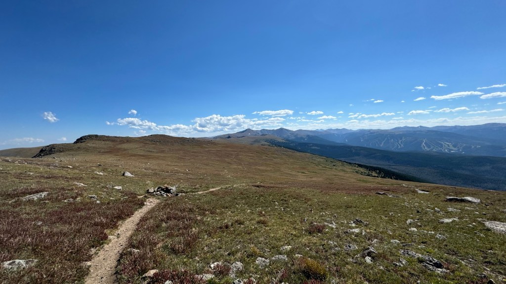 Once we turned off the dirt road, we started climbing back up on a rocky trail until we rejoined with the CDT before climbing our first 13,000 feet mountain. This was up to James Peak.