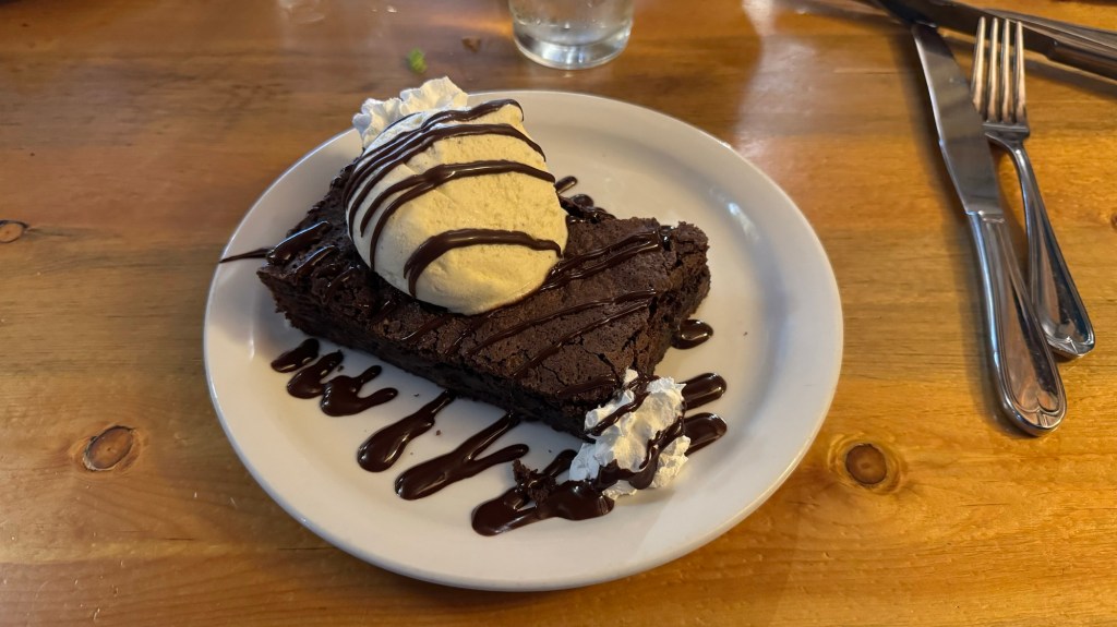 I ordered a burger and fries which were mediocre however, the brownie and ice cream was delicious. Warm, soft, huge, and freshly baked, SO good!