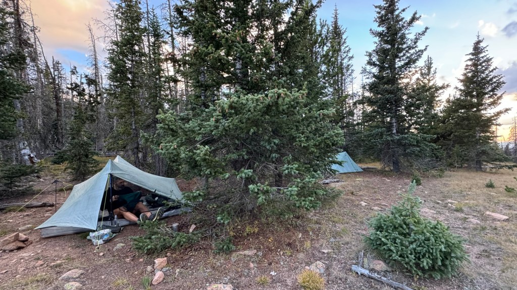 We made it to camp around 6:30 with plenty of daylight left. Thank goodness! We set up our tent in some trees that looked alive, made dinner, and got in bed.
