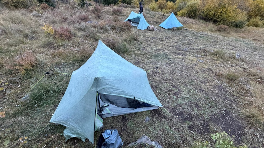 The camp area is not ideal at all due to rain coming and there are no trees to put our tent under. But we made do and quickly made dinner.