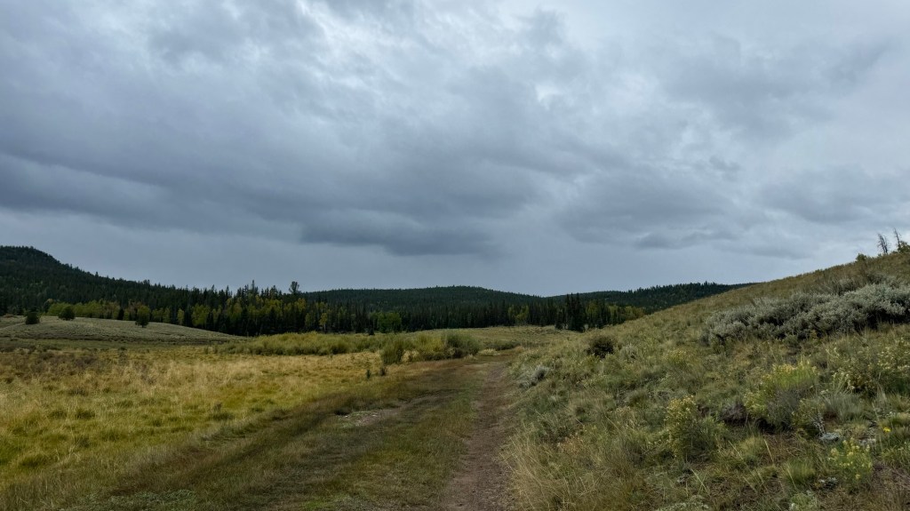 We came out into open clearings and saw rain off in the distance and would brace for it to come out then it would frequently fizzle and go another direction. I had fingers crossed this would happen all day, but knew that it was unlikely.