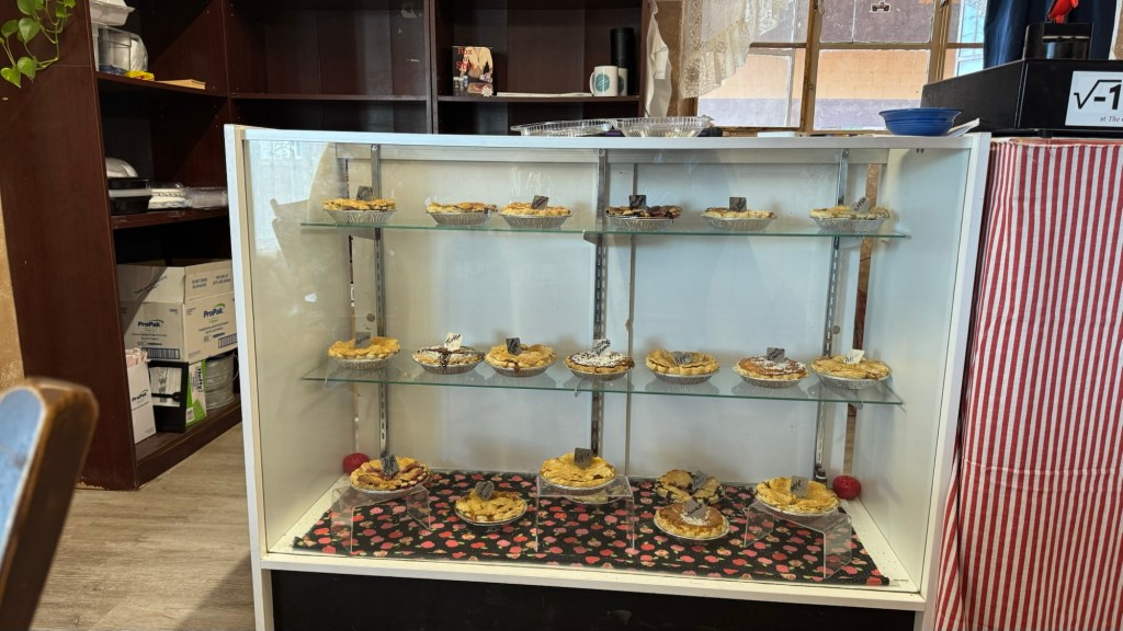 We put down our bags then went to the Gathering Place to eat breakfast. I ordered pancakes and eggs and also got a blackberry pie to go. This place was famous of course, for its handmade pies.