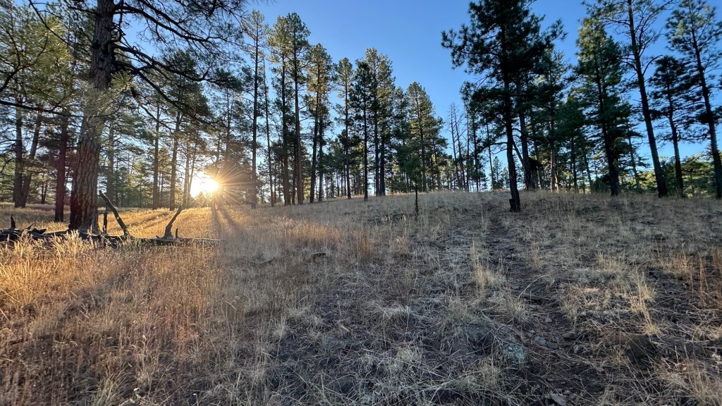 It was a slow start this am and we got out around 8 AM. It was chilly and I had all four layers on this morning; my hiking shirt, my mid layer jacket, my puffy, and my rain jacket. I wanted to be toasty. We hiked along and started to see the sun shine between the trees.