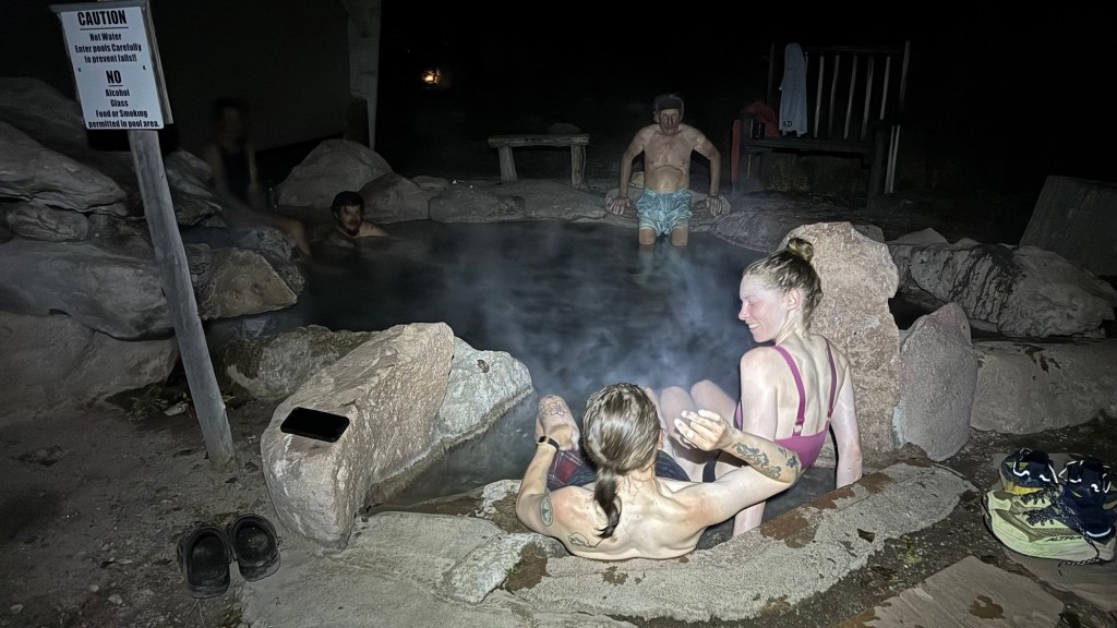 We then made it back to camp and got in the natural hot springs that make this campground popular. I could have sat in there all night. To finally be so warm was such a delight. Also, Akela and Karma are here tonight too! Yay!
