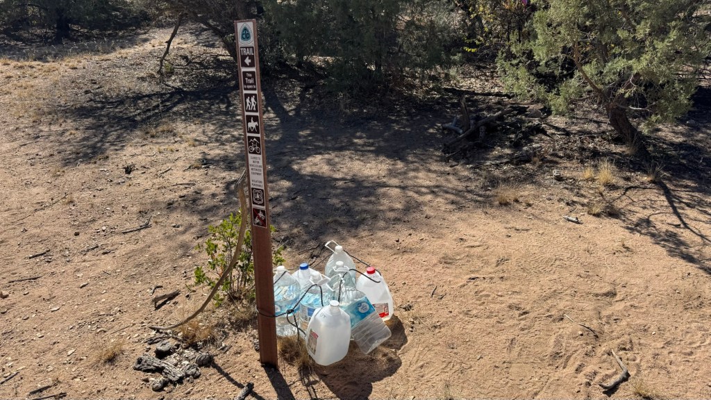I then made it down to a trailhead where the water cache was said to be and was thrilled to see gallons of water, plenty for all three of us. I was so thankful for this and the trail angel who fills these up. This is a huge help!!
