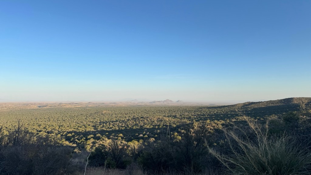 The trail then took us out on some ridges with views of the mountains in the distance and the ever growing desert and few trees. It was where we were headed and I was ready for it.