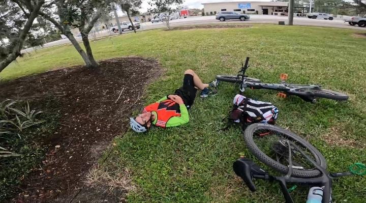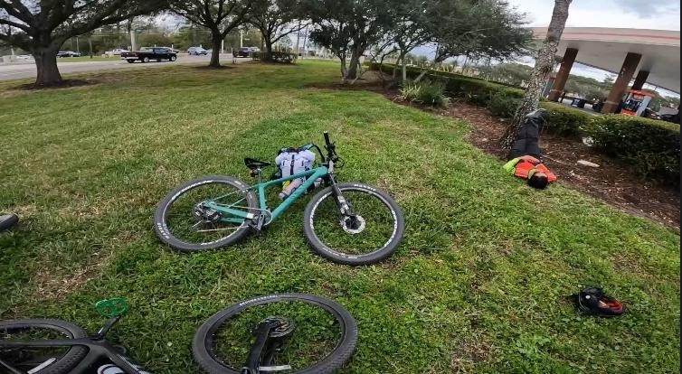 As we came to a ballpark to write down the answer to a checkpoint, I rode over to the side and tried to lay down but realized this area was incredibly loud with music from the stadium so we decided to continue on. Once we found a gas station, I grabbed some pizza and laid down again. I once again entered this swirling state of almost going unconscious, unsure if I fully did or not. After about 10 minutes we got back up and headed out on our bikes.