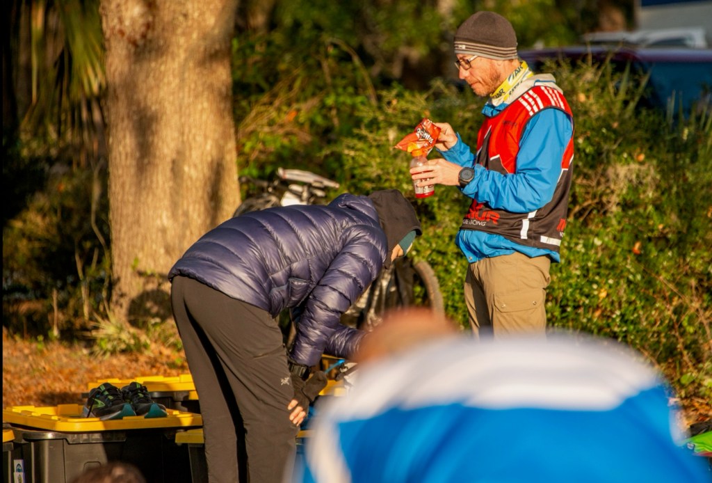 We finally came out of the sandy area a couple hours later and onto paved roads and surprisingly a busy two lane road. I was shocked that they had us on such a busy road but apparently, things were different this go around. We flew up a bridge passing people left and right and picked up another checkpoint, suddenly finding ourselves around a ton of teams. As we road along through the town of Deland, I started to feel this derealization sensation late afternoon. This has happened to me only a handful of times and every time it occurs, its from sleep deprivation. The best way I can describe it is that I do not feel full present, that reality feels a little bit distant like watching a movie, and sounds are heard differently, sharper and distant at the same time, and my reaction time is slowed. Its a very loopy feeling and I knew that I needed to lay down again just for a short bit.